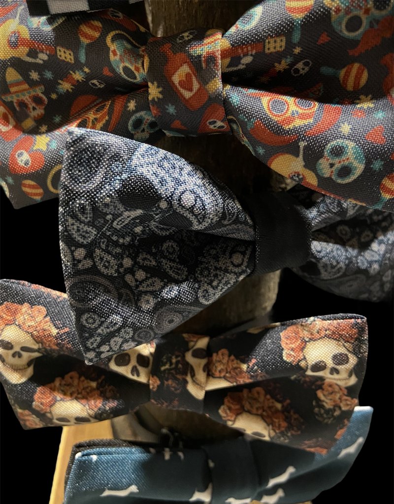 Vasilina bedruckt die Hochwertigen Stoffe selber in ihrer Werkstatt und fertigt die doppelten Fliegen in Handarbeit. Stück für Stück entstehen so die wunderschönen RetroPunk Fliegen mit sehr aussergewöhnlichen Motiven.